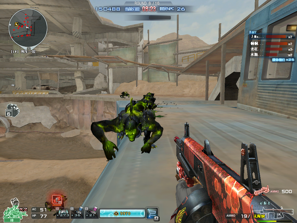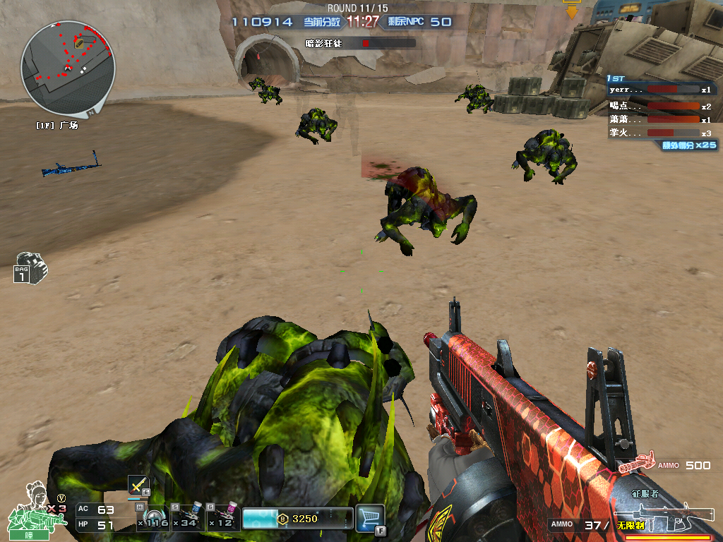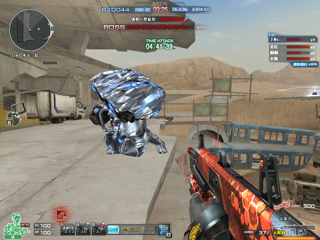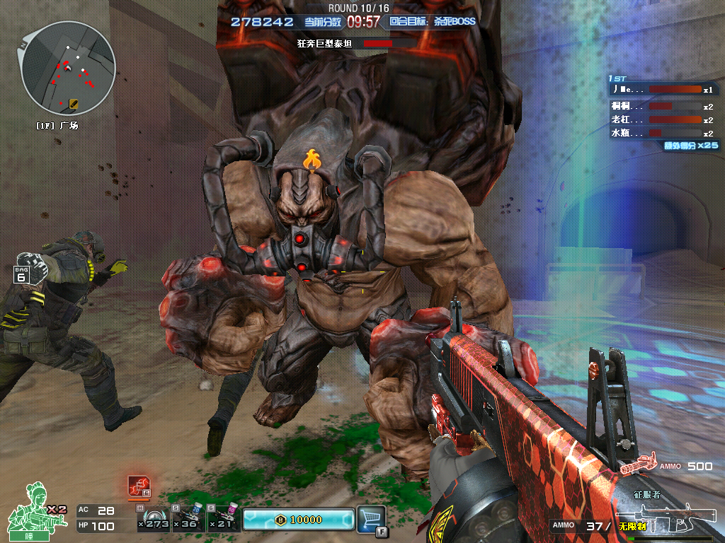 最后一点就是他的伤害很高,无任何减伤装扮基本10HP说没就没,可以说是除了BOSS和自爆以外伤害最高的,对付他们就要找一个他们只能从一个方向过来,或者四个队友背对背同时攻击不同方向来的暗影狂徒。